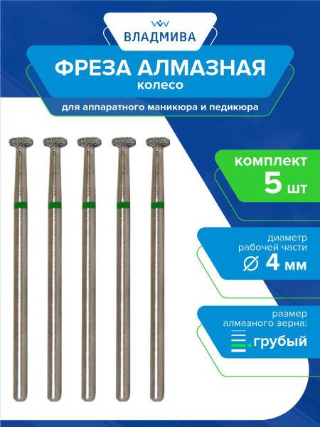 Discover the VladiMiVa 4mm Coarse Grit Diamond Wheel Nail Bit (Part # 876.104.040.018.040) – a premium 5-piece set designed for professional nail technicians. This expertly crafted diamond bit features a wheel shape and coarse grit, ideal for a range of advanced manicure and pedicure services.
