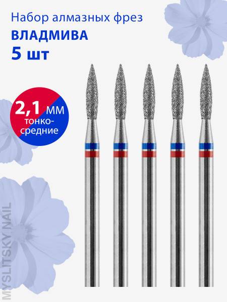 </section>Premium Diamond Flame Nail Drill Bit by VladiMiva - Ideal for Manicure, Pedicure, & Cuticle Refinement - D2.1mm (Fine/Medium Grit), 5-Piece Set