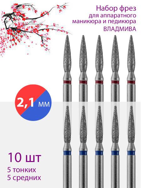 <hr>Achieve flawless manicures and pedicures with the VladMiVa Diamond Nail Drill Bit Set. This professional-grade collection features flame-shaped (drop) diamond bits, essential for precise cuticle and side wall refinement in e-file manicures. The varying grits – fine (red) and medium (blue) – offer versatile application.