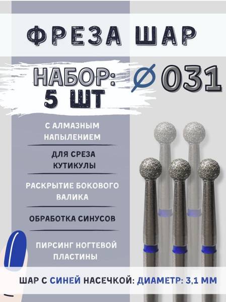 Achieve immaculate nails with unparalleled ease. These diamond bits provide rapid and high-quality cuticle processing without damaging the natural nail. The 0.31mm blue grit diamond ball bit is a professional-grade tool for masters, ensuring flawless nail plate and cuticle area refinement.