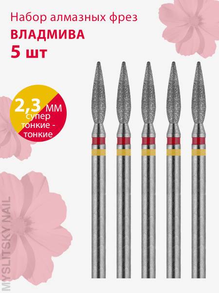 Professional Vladmiva Diamond Flame Bit for Safe Cuticle & Skin Treatment | Manicure & Pedicure Tool, 5-Pack
