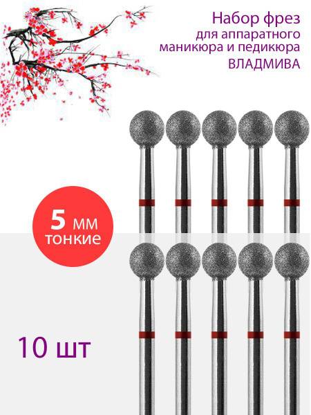 Elevate your nail care routine with the VladMiVa Diamond Nail Drill Bit, specifically engineered for precision manicures and pedicures. This fine-grit (red stripe) ball-shaped burr, with a 5.0mm diameter, is your go-to tool for safe and effective cuticle and side wall refinement in electric filing. Its diamond coating ensures smooth, efficient processing, making it an ideal alternative to traditional nippers for cuticle work.