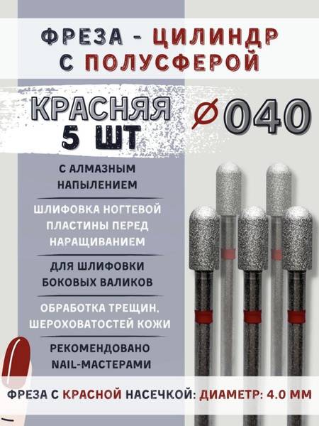 Diamond Nail & Foot Care Bit - Barrel Shape (Cylinder Hemisphere) with Red Grit - 5 Pcs, 4mm (856.104.137.080.040)