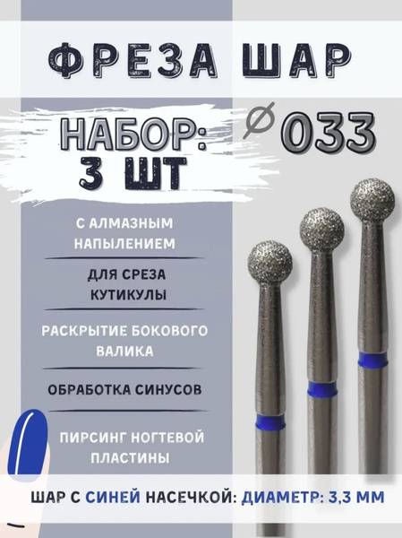 Elevate your nail care with this premium 5-piece Diamond Ball Bur Set for manicure and pedicure. Featuring a fine blue grit (033), these burs are expertly designed for precise cuticle trimming and effective sidewall opening, ensuring a clean and professional finish. Each bur boasts a 3.3mm diameter, offering optimal control and comfort during detailed nail work. The high-quality diamond coating allows for smooth, efficient nail surface processing without damaging the natural nail structure. The ergonomic ball shape provides ease of use, enabling access to even the most challenging areas of the nail. The specific blue grit (033) is engineered for delicate cuticle treatment, facilitating accurate and safe removal. This diamond ball bur set is your reliable partner for achieving flawless manicures and pedicures, whether at home or in a professional salon.