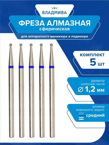 Achieve flawless nail artistry with this professional 5-piece set of VladMiVa diamond sphere burrs. Featuring a medium grit and a precise 1.2mm working diameter, these burrs are expertly crafted for a wide range of manicure and pedicure applications. Ideal for nail extensions, intricate designs, and precise corrections, they are also highly effective for smoothing and treating calloused skin.