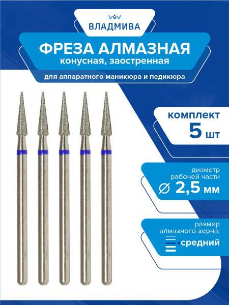 Achieve flawless nail artistry with our premium Diamond Tapered Cone Carbide Bit, featuring a medium grit and a 2.5mm working diameter. This essential 5-piece set (model 866.104.164.100.025) is expertly designed for professional hardware manicures and pedicures, ideal for nail extensions, intricate designs, and precise nail plate corrections. It's also perfect for effective cuticle and rough skin treatment.