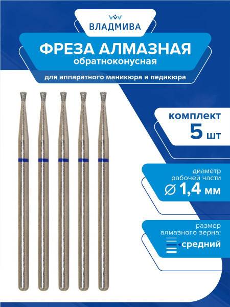 Title: Medium Grit Taper Diamond Burs 1.4mm | 5-Piece Set | VladiMiVa 866.104.010.016.014