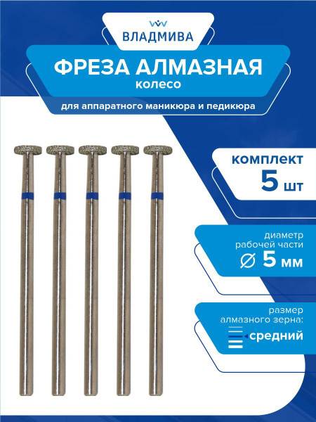 Elevate your manicure and pedicure services with this premium 5-piece set of diamond nail drill bits. Each bit features a 5mm wheel shape with a medium grit abrasive surface, perfect for a wide range of nail and cuticle care applications. Model number 866.104.040.008.050.