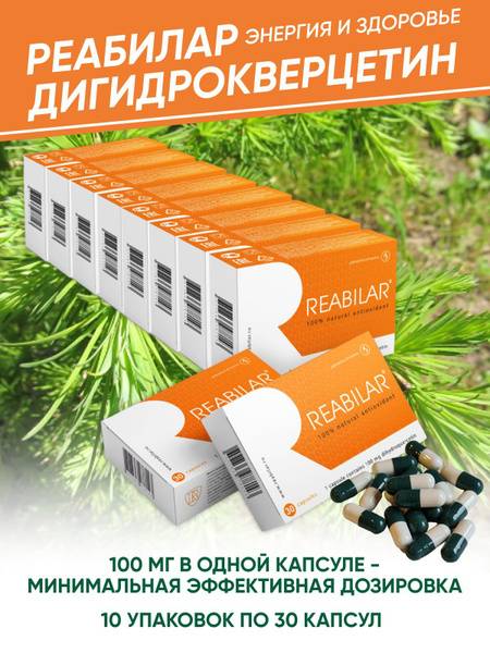 Reabilar dietary supplement provides a potent source of dihydroquercetin (DHQ), supporting cardiovascular health and immune function. Adults take one 100mg capsule daily with food, or two 50mg capsules, for a one-month course. Learn more about the scientific backing for these claims.