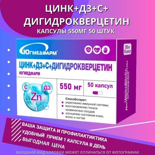 Yugmedfarm's Dihydroquercetin + Vitamin C + D3 + Zinc supplement offers a synergistic blend of essential nutrients to support your overall health and well-being. Each 550mg capsule contains a carefully formulated combination designed for optimal absorption and effectiveness. This comprehensive formula addresses multiple aspects of health, providing a powerful daily defense against common ailments and promoting long-term wellness.