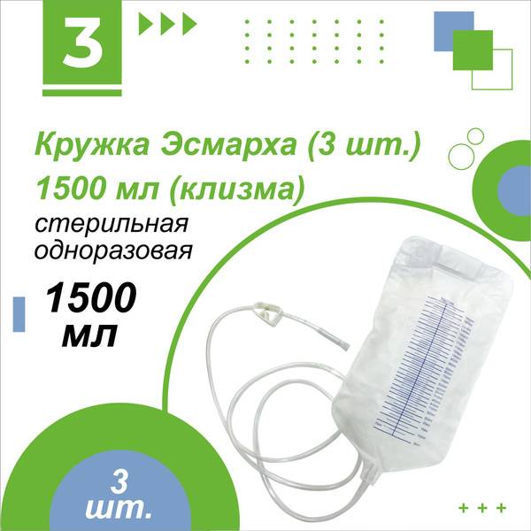 The disposable Esmarch syringe is a medical device used for administering therapeutic cleansing enemas and vaginal douches. It's employed before scheduled surgeries, for constipation relief, and prior to radiological examinations requiring contrast medium introduction into the bowel. The Esmarch syringe also finds application in gynecology for vaginal irrigation in the treatment of infections. Key features include a plastic hanger for suspension approximately 1.5 meters above the patient, 50ml to 1.5-liter graduations for precise fluid control, a 1.5m connecting tube with a rounded tip for comfortable insertion, a built-in clamp for flow regulation, and a non-return valve preventing fluid leakage. This sterile, single-use device requires disposal after use and is not suitable for disinfection. Suitable for both medical facilities and home use under a doctor's guidance. Instructions are included on the individual packaging. Pack contains 3 units.