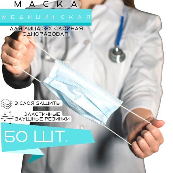 "description": "High-quality, 3-ply disposable face masks manufactured in Russia. These hygienic masks provide individual protection against airborne infections, aerosols, dust, and particulate matter. Featuring a nose wire for a secure fit and a form-fitting design.",