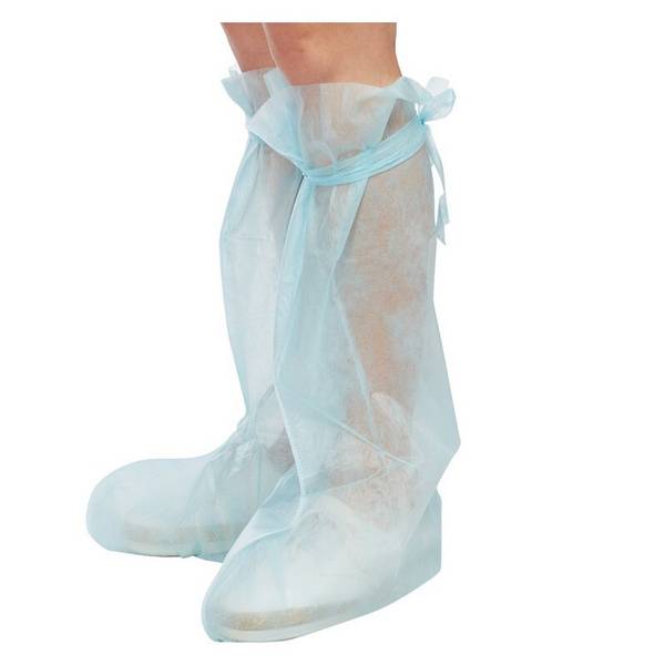 High-quality, disposable Hexa surgical shoe covers with ties offer superior protection and comfort. These non-sterile covers feature a 65cm height, 40cm foot length, and 60cm ties, ensuring a secure and comfortable fit. Constructed from a durable, 42gsm polypropylene spunbond non-woven fabric, they are water-resistant, breathable, and minimize lint. The unique exterior welded seam (no stitching) enhances durability and prevents unraveling. Their non-slip design provides excellent traction on tile floors. Packaged in a polyethylene bag for convenient storage and hygiene. 4-year shelf life. Ideal for medical professionals, cleanroom environments, and various industrial applications.