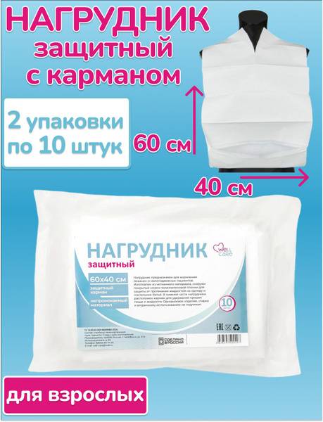 These disposable protective bibs provide reliable protection for clothing during mealtimes, preventing spills and stains. Made from a durable spunbond material laminated with polyethylene film, they are waterproof and highly effective at keeping clothes clean and dry. The bibs feature a practical lower pocket for added protection against spills and messes, and are secured with two convenient ties.