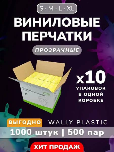 Description: High-quality, powder-free, clear vinyl gloves (1000 count/500 pairs) from Wally Plastic. These versatile disposable gloves offer excellent protection against viruses and bacteria. Unlike latex, nitrile, rubber, polyethylene, or TPE gloves, these vinyl gloves are ideal for a wide range of applications including: medical examinations, cosmetic procedures, household cleaning, gardening, food preparation, hairdressing, manicures, waxing, and more. The transparent design allows for dexterity and visibility. Available in sizes S, M, L, and XL. Packaged in a sturdy cardboard box with shrink wrap for added protection. (Each box contains 10 smaller packs of 100 gloves/50 pairs).