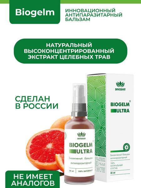 Divosvit, Biogelm Ultra, antiparasitic balm, natural remedy, parasite cleanse, immune support, antiviral, antioxidant, body cleansing, detox, herbal remedy, respiratory health, skin health, liver health, digestive health, urogenital health, cardiovascular health, musculoskeletal health, weight loss, giardia, amoeba, herpes simplex, candida albicans.