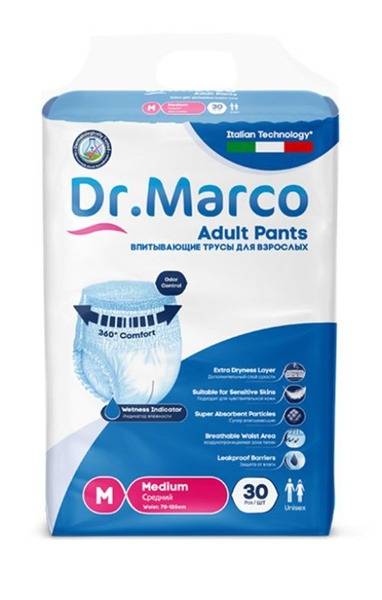 Dr. Marco Adult Diaper Briefs M30, Size M (Waist 27.5"-47"), 30 Count