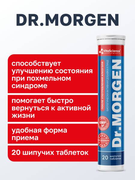 Dr. Morgen Effervescent Vitamins – an innovative solution for daily energy and well-being! This VitaScience vitamin complex is formulated for both men and women, providing essential micronutrients and vitamins for optimal bodily function. Magnesium, a key component, regulates the nervous system, supports muscle function, and improves overall well-being. B vitamins boost metabolism, strengthen the immune system, and promote healthy skin, hair, and nails. These convenient effervescent tablets dissolve quickly in water for a delicious, rapidly absorbed drink that delivers an immediate energy boost. Perfect for on-the-go use – at work, the gym, or while traveling. Furthermore, these vitamins are an excellent choice for rapid recovery after a night out, effectively combating hangover symptoms and restoring vitality.