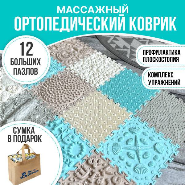The Dr. Ortman modular orthopedic massage mat helps children develop proper foot posture and prevent flat feet. Its varied textures stimulate the musculoskeletal system, improving coordination and balance. More than just a children's toy, this puzzle mat offers benefits for adults too: improved organ function, enhanced brain activity, foot deformity prevention, immune system boost, and mood elevation.