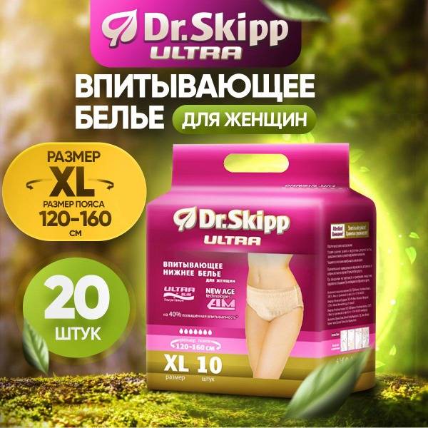 Description: Experience ultimate comfort and protection with Dr.Skipp Ultra XL adult incontinence underwear. Designed for women, these discreet and highly absorbent disposable underwear provide reliable protection against light bladder leaks, postpartum bleeding, heavy menstrual flow, and other instances of unexpected discharge. The advanced AM technology ensures a thin, lightweight, and comfortable fit that feels like regular underwear, remaining virtually undetectable under clothing. Say goodbye to embarrassing leaks and hello to all-day confidence and comfort with Dr.Skipp Ultra XL. These underwear offer a secure, chafe-free fit, providing the comfort and peace of mind you deserve. (20 count package).