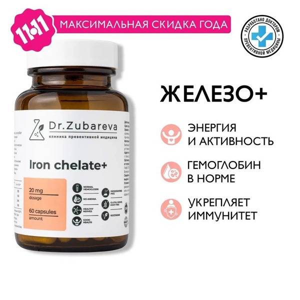 Dr. Zubareva, Iron Chelate, Iron Supplement, Iron Deficiency, Vitamins for Women, Vitamins for Men, Hemoglobin, Anemia, Menopause, Pregnancy, Hair Growth, Energy Booster, Dietary Supplement, Chelated Iron, Fumarate Iron, Hypothyroidism, Anti-Aging, Preventative Medicine.
