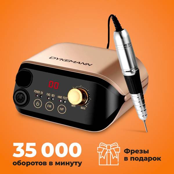 The Dykemann Nagel M55 professional electric nail file is designed for effortless manicure and pedicure treatments on both natural and artificial nails. Its powerful 35,000 RPM motor ensures smooth, vibration-free operation for precise nail shaping, cuticle removal, air pocket elimination, and polishing. Intuitive touch controls and a clear display allow for easy speed adjustment. The Nagel M55 features forward and reverse rotation for comfortable use by both right- and left-handed professionals and hobbyists alike. Crafted from high-quality materials and backed by an extended warranty, this device offers superior reliability and performance for both home and salon use. Includes 6 assorted bits.