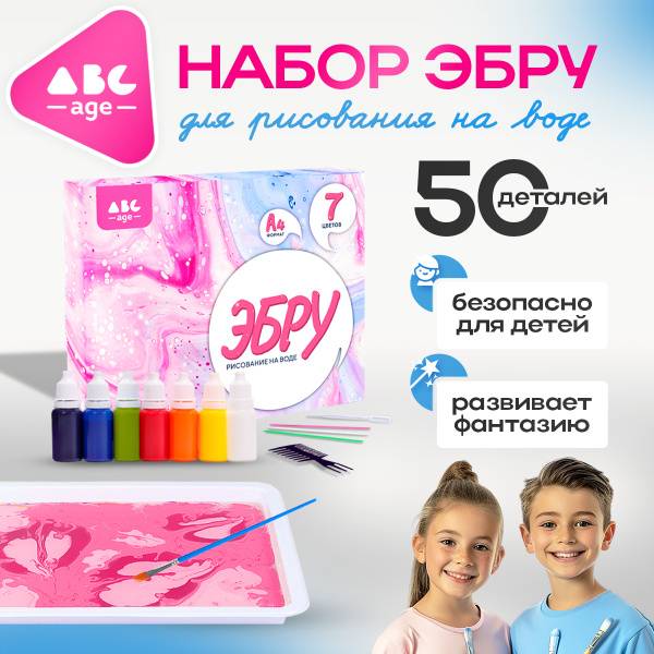Description: Unleash your inner artist with the abcAge Ebru Water Marbling Kit! This best-selling, TV-advertised kit provides everything needed for hours of creative fun. Watch as vibrant colors swirl and blend on water, creating mesmerizing patterns you can then transfer to paper. The kit includes an A4 tray, 7 Ebru paints (mixable for over 20 shades!), 4 quick-dissolving thickener sachets (ready to use in 40 minutes!), 30 sheets of specialty paper (easily supplemented with printer paper), a comb for creating intricate designs, spatulas, and a brush. It's intuitive, magical, and perfect for all ages. More than just a toy, it's a unique experience that sparks joy and creativity. A fantastic gift for birthdays, holidays (including the perfect New Year 2025 gift!), or any special occasion. Give the gift of wonder! *(Note: Apron and tablecloth not included. See image for complete contents. Instructions in English are provided on the box.)*