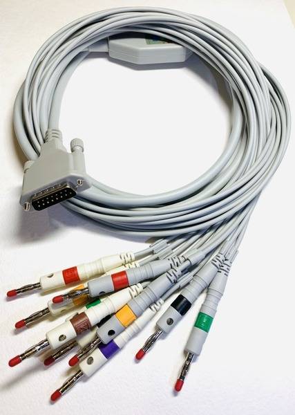 This high-quality ECG cable is a medical consumable used for electrocardiographic examinations. This flexible lead connects the electrodes to the ECG machine, transmitting electrical signals from the heart for accurate analysis. Engineered for reliability and signal stability, it ensures precise diagnostic results. Manufactured from specialized electrically conductive and insulated materials, it prevents signal distortion. Its user-friendly design provides comfortable electrode placement and secure fixation on the patient's body, minimizing movement during the procedure. Compatible with all modern ECG machines, this cable is suitable for use in hospitals, clinics, and home settings.