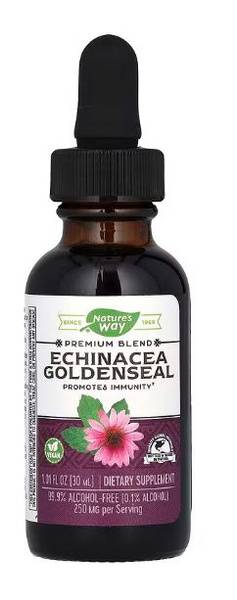 Nature's Way, Echinacea Goldenseal, echinacea, goldenseal, hydrastis canadensis, immune support, immune booster, cold and flu, cold remedy, flu remedy, natural remedy, antiviral, antibacterial, respiratory infection, urinary tract infection, UTI, bronchitis, sinusitis, tonsillitis, immune system, boost immunity, fast recovery, natural health, herbal remedy, 30ml, 1 oz, liquid extract.