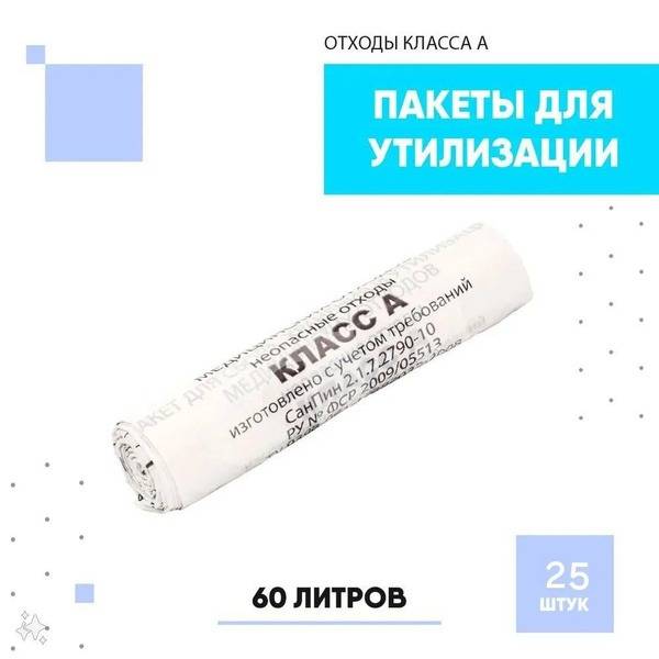 High-density polyethylene (HDPE) medical waste bags designed for the safe and hygienic disposal of Class A medical waste. Each roll contains 25 bags, measuring 70x80cm with a 60-liter capacity. Store indoors, at least 1 meter from heating appliances. Suitable for unheated storage at temperatures down to -30°C for up to one month. Protect from direct sunlight. 5-year shelf life.