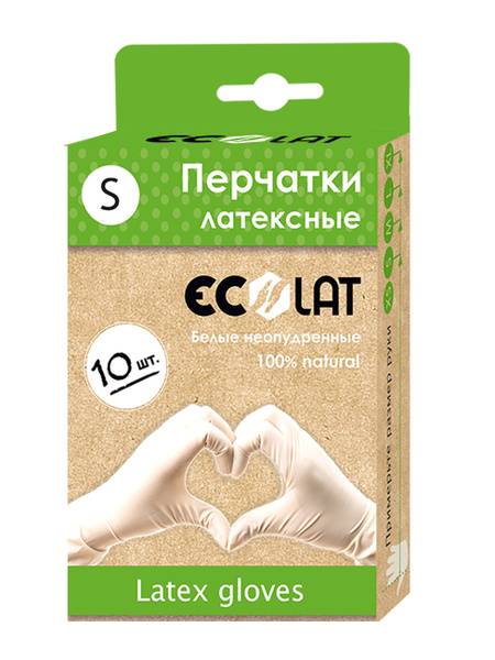 Description: EcoLat disposable, non-sterile, powder-free latex gloves are crafted from natural, biodegradable latex. These comfortable, virtually unnoticeable gloves are suitable for medical, cosmetic, food service, and industrial applications. Their high elasticity ensures excellent tactile sensitivity, making them ideal for a wide range of tasks, including diagnostic procedures, beauty treatments, and work with sensitive electronics like touchscreens. Designed for comfort and performance, these gloves offer superior dexterity and are food-safe. (Thickness: 5.5-6.0 g/m² in size M). Note: Latex may cause allergic reactions in individuals with latex sensitivity. Shelf life: 5 years. Available in size Small (10 gloves per pack).