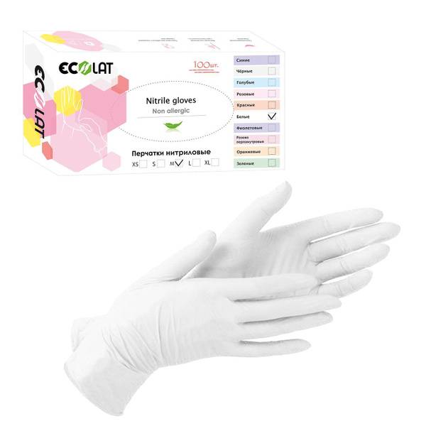 Description: Ecolat white nitrile disposable gloves offer superior elasticity and maintain excellent tactile sensitivity. These powder-free, non-sterile gloves are hypoallergenic, making them ideal for individuals with latex allergies. Perfect for a wide range of applications, including medical diagnostics, therapy, examinations, cosmetology, beauty industry, food processing, chemical manufacturing, microelectronics, and more. Suitable for food contact and use with touchscreen devices. Experience the high performance and comfort these gloves provide. Density: 3.5 g (Size M). 5-year shelf life.