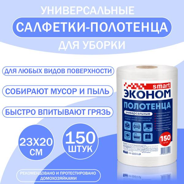 Experience the convenience of Economy Smart disposable cleaning cloths, expertly designed for efficient home cleaning. These 150-count rolls provide a continuous supply of high-performance cloths for various cleaning tasks. The unique microfiber blend combines exceptional absorbency with an anti-static effect, attracting dust and dirt like a magnet for faster, more effective cleaning. Ideal for both wet and dry use, these versatile cloths are perfect for wiping down surfaces, cleaning cars (leaving no streaks on glass or bodywork), and tackling tough dirt in bathrooms, workshops, or even on camping trips. Their durable construction ensures optimal performance even with repeated use, and their convenient disposable nature eliminates the need for laundry. The 23x20 cm size is perfect for a range of cleaning applications, from polishing furniture to mopping floors. Say goodbye to messy cleaning and hello to the efficiency of Economy Smart cleaning cloths.