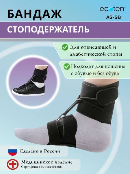 The Ttoman AS-SB foot drop brace (size L) provides reliable support for dropped foot. This Ecoten-style orthosis is comfortable, breathable, and easy to use, both with and without shoes. Featuring a convenient locking hook attachment, the black brace is made from moisture-wicking material.