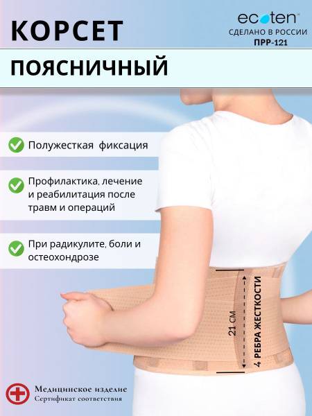 Experience reliable lower back support and pain relief with the Ecoten PRR-121 semi-rigid lumbar support corset. This high-quality orthopedic corset is designed to provide comfortable, adjustable support for a variety of back conditions and activities.