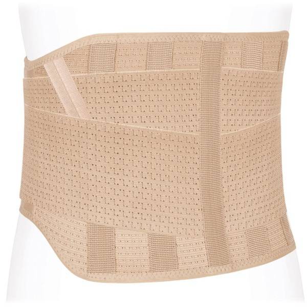 The Ecoten PRR-25P L semi-rigid lumbar-sacral support corset provides moderate fixation for the lower back. Featuring a 25cm height and 6 plastic support stays (4 for size S), this breathable, moisture-wicking corset is made with high-cotton content materials for superior comfort. Beige in color.