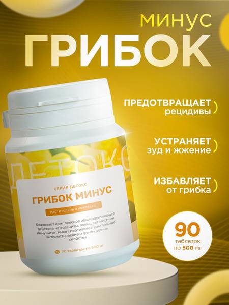 Gribok Minus is a natural, multi-action remedy for fungal infections of the skin and nails. Effectively eliminating symptoms, supporting tissue repair, and preventing reinfection. It targets the root causes of fungal infections, including nail fungus, athlete's foot, and candidiasis (thrush), reducing infection activity and promoting regeneration of damaged tissues. Gribok Minus quickly alleviates itching, burning, and inflammation, while strengthening nails and improving skin condition. Its natural formula supports the body's defenses, minimizing the risk of recurrence and offering long-term protection. Suitable for treating onycholysis, toenail and fingernail fungus, athlete's foot, and candidiasis. Gribok Minus can also be used as part of a comprehensive treatment plan for various skin conditions and for preventing relapse. Experience healthy, fungus-free skin and nails. This dietary supplement is not a medicine and does not replace medical treatment. Consult a doctor before use.