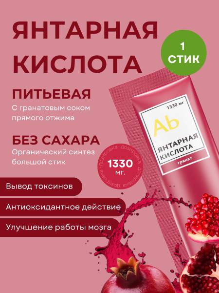 Succinic acid, EGENY, pomegranate, single-stick packets, energy boost, immunity support, weight management, skin health, hair health, nail health, antioxidant, photoprotector, biorevitalization, muscle recovery, heart health, liver health, cognitive function, dietary supplement, healthy lifestyle.