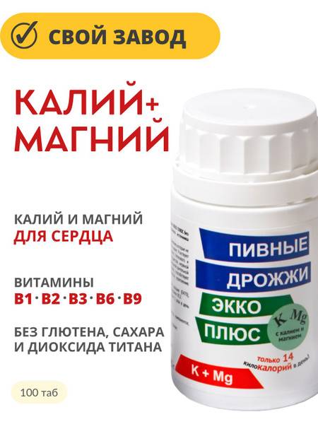 Ecco Plus Brewer's Yeast tablets provide a potent combination of potassium, magnesium, and B vitamins to support optimal cardiovascular, nervous system, and cognitive function. Potassium plays a crucial role in maintaining healthy blood pressure, supporting heart muscle function, and promoting fluid balance. It also contributes to improved brain function by enhancing oxygen delivery. Magnesium offers cardioprotective benefits, regulates nerve function including heart rhythm, and helps prevent soft tissue calcification. Rich in B vitamins, brewer's yeast provides essential nutrients for nerve cell health, energy production, and protection against stress. This unique formula helps alleviate nervous tension, depression, and neurasthenia symptoms by nourishing and supporting a healthy nervous system. Experience the holistic benefits of Ecco Plus for improved overall well-being.