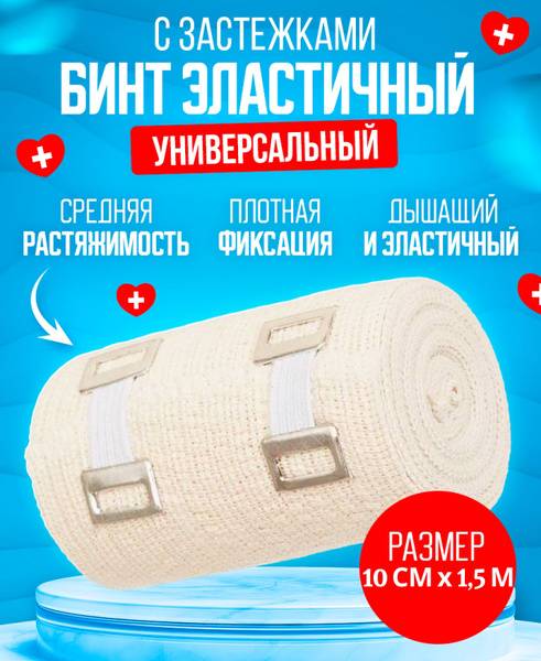 Description: This high-quality medical elastic bandage with closures is made from natural, hypoallergenic materials, allowing your skin to breathe even during intense physical activity. The edges are carefully finished, and it features two convenient clips for secure fastening. The consistent texture and neatly finished edges ensure a comfortable fit. This versatile bandage provides a snug, supportive compression to any body part, including ankles, elbows, knees, and shoulders. Offering medium elasticity, it's ideal for: therapeutic and preventative care; pre- and post-operative use; treating chronic venous insufficiency and superficial thrombophlebitis (including stages 1 and 2 varicose veins in the upper and lower extremities). Composition: 76% cotton, 12% latex, 12% polyester. Expiry date: 02/2027.