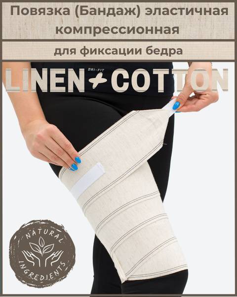 This high-quality elastic compression thigh bandage provides superior support and pain relief for various conditions. Crafted from a blend of natural linen and organic cotton, it offers exceptional breathability and comfort while delivering targeted compression to the thigh.