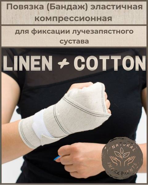 This high-quality elastic compression wrist bandage offers gentle support and pain relief for wrist injuries and conditions. Crafted from a blend of breathable linen and 100% organic, undyed cotton, it provides comfortable, all-day wear. The inner layer of natural latex threads ensures optimal compression and therapeutic support.
