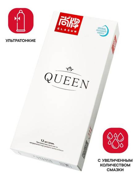 ultra-thin condoms, natural latex condoms, enhanced lubrication, hyaluronic acid, condoms for sensitive skin, hypoallergenic condoms, premium condoms, anatomically shaped condoms, safe sex, STI protection, pregnancy prevention, Elasun Queen, 12 pack condoms, condoms for pleasure, thin condoms, lubricated condoms.