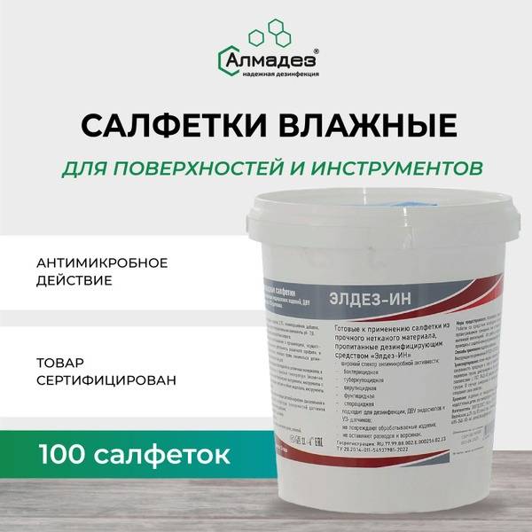 Keywords: Eldez-IN, disinfecting wipes, sporicidal wipes, high-level disinfection, HLD, sterilization, medical devices, endoscopes, ultrasound transducers, antimicrobial, virus, bacteria, fungi, tuberculosis, nosocomial infection, surgical instruments, dental instruments, healthcare, infection control, Russia