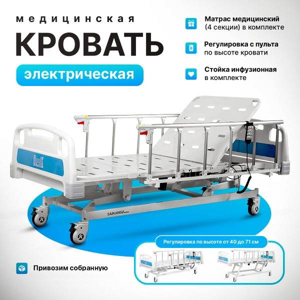 Description: The Saikang functional medical bed is designed for the comfort and care of bedridden patients. This electrically adjustable bed features a sleek white design with rounded edges and includes convenient mobility with self-orienting double casters (two with brakes). Built-in storage solutions comprise a compartment with a door and shelf, a deep drawer, and a retractable side table that neatly slides under the main surface. The durable tabletop boasts a 6mm four-sided edge banding and a wide metal handle for easy access. Additional features include a pull-out tray above the drawer with a 5mm deep cup holder. The bed is constructed with high-quality, impact-resistant ABS plastic in white, featuring volume-molded plastic tabletops and optional stainless steel inserts. Dimensions: Depth 460mm, Width 470mm, Height 795mm. Registration certificate available.