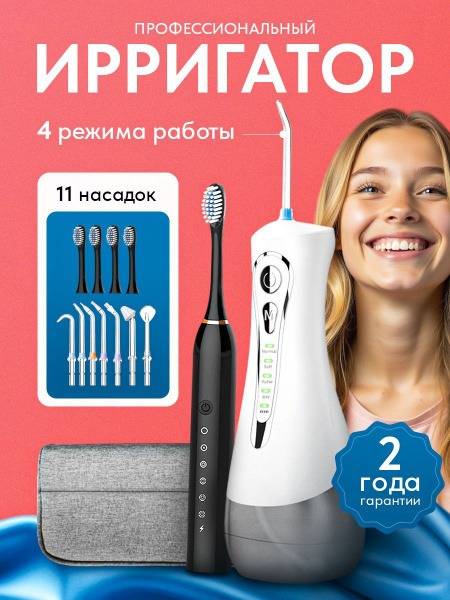 Description: Experience the future of oral hygiene with this premium electric toothbrush and water flosser combo. This portable, powerful set combines a sleek white water flosser with a sophisticated black electric toothbrush for a complete clean. Multiple interchangeable brush heads and flossing modes provide comprehensive cleaning, removing plaque, tartar, and leaving your breath fresh for hours. Daily use helps whiten teeth and improve breath. The pulsating water flosser gently yet effectively cleans around braces, aligners, and veneers, reaching even the most challenging areas around implants and dentures. With adjustable pressure settings ranging from gentle gum massage to intensive cleaning and whitening, this versatile device caters to all needs. The extensive accessory set includes standard, tongue, implant/crown/bridge, periodontal, orthodontic, nasal, and hook tips, plus four replacement brush heads for the electric toothbrush. All attachments are 360° rotatable for superior cleaning. This cordless, rechargeable device features a USB Type-C charging port and a clear battery indicator. The increased water reservoir allows for longer use sessions. Compact, lightweight, and housed in a protective travel case, this water flosser is perfect for both home and travel. Its stylish design complements any bathroom. Recommended for ages 10 and up.