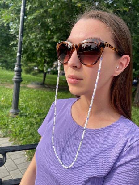 Elevate your eyewear and style with this exquisite eyeglass holder, expertly crafted by astro_dom_jewelry. This elegant piece features lustrous white Japanese beads, punctuated by captivating lilac accents, creating a delicate and sophisticated design. The subtle shimmer adds a touch of understated luxury to any outfit, effortlessly transitioning from casual everyday wear to more formal occasions.