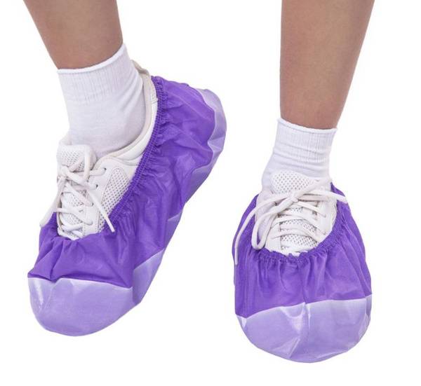 Disposable shoe covers, medical shoe covers, laminated shoe covers, purple shoe covers, white shoe covers, EleGreen shoe covers, non-woven shoe covers, Spunbond shoe covers, high-strength shoe covers, disposable shoe protectors, medical supplies, hygiene supplies, museum supplies, exhibition supplies, 250 pairs, bulk shoe covers, polyethylene shoe covers, double elastic shoe covers.