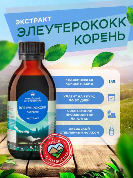 Eleuthero root extract, Eleuthero tincture, adaptogen, immunity booster, energy booster, stress relief, natural remedy, Far East herbs, Sakhalin Island, eleutherosides, chronic fatigue, blood sugar support, cholesterol support, antioxidant, hormonal balance, skin health, reproductive health, dietary supplement, 200ml.