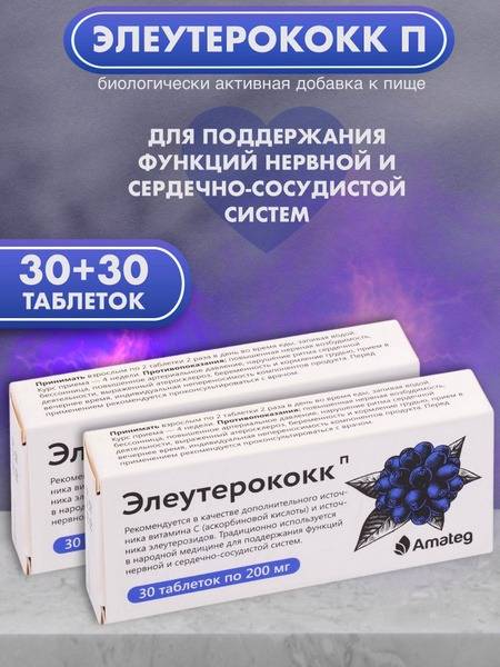 Eleutherococcus P Amatec is a natural, invigorating, and restorative dietary supplement derived from Eleutherococcus senticosus root. Each tablet contains 200mg of active ingredient, providing sustained energy and support. This dual-pack contains 60 tablets (2 packs of 30) for extended use. Traditionally used for its adaptogenic properties, Eleutherococcus P Amatec helps improve both physical and mental performance by promoting resistance to stress and fatigue. It supports immune function and enhances the body's natural ability to adapt to daily challenges. Experience sustained energy levels and increased vitality with regular use of Eleutherococcus P Amatec. This is a dietary supplement; consult your doctor before use.